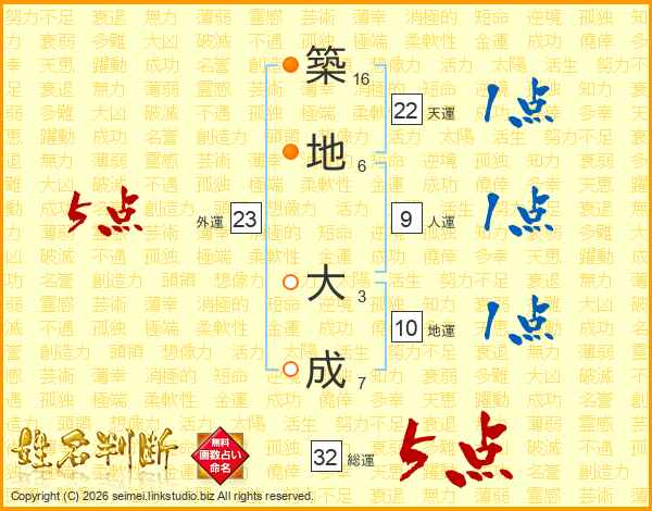 築地大成さんの総運は32画の5点!