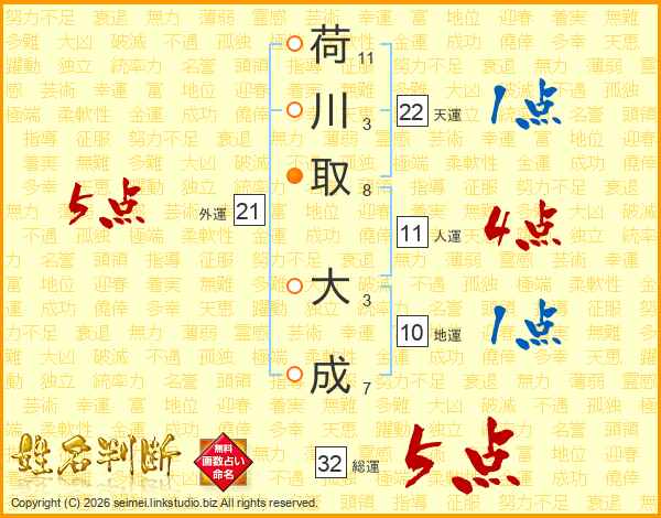 荷川取大成さんの総運は32画の5点!