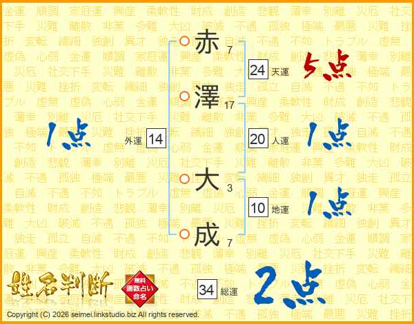 赤(7画)澤(17画) 大(3画)成(7画)