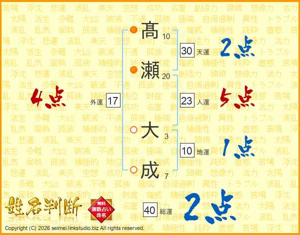 髙瀬大成さんの天運は30画の2点!