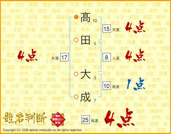髙田大成さんの天運は15画の4点!
