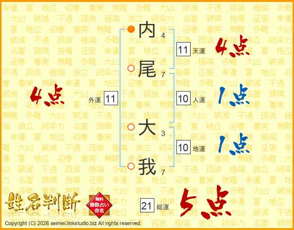 内尾大我さんの総運は21画の5点!