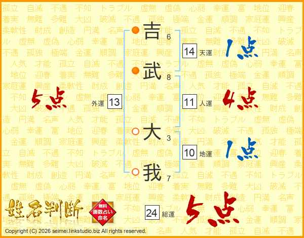 吉武大我さんの総運は24画の5点!