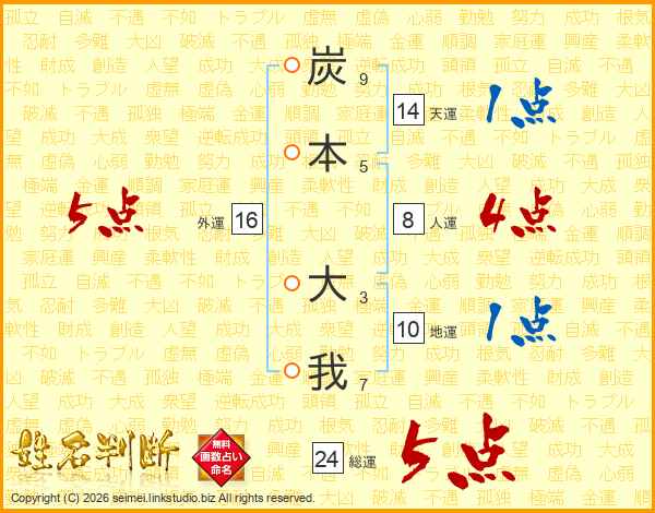 炭本大我さんの天運は14画の1点!
