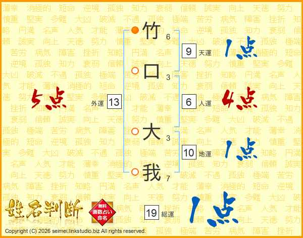 竹口大我さんの総運は19画の1点!
