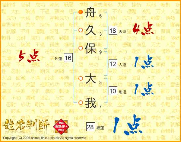 舟久保大我さんの総運は28画の1点!