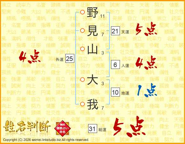 野見山大我さんの総運は31画の5点!