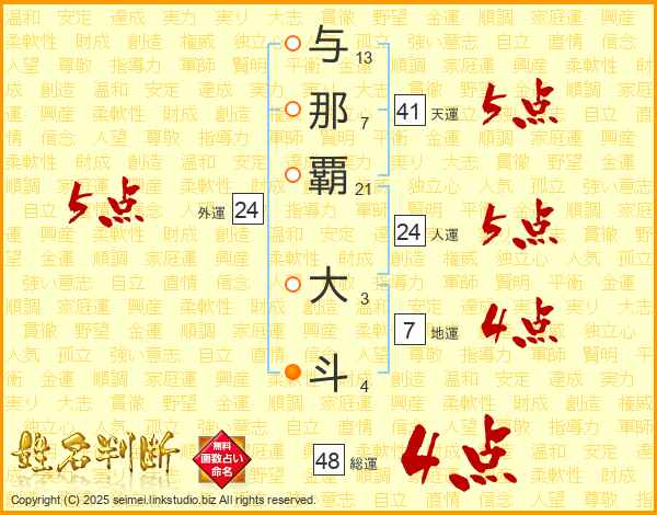 与(13画)那(7画)覇(21画) 大(3画)斗(4画)