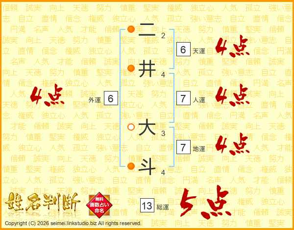 二井大斗さんの総運は13画の5点!