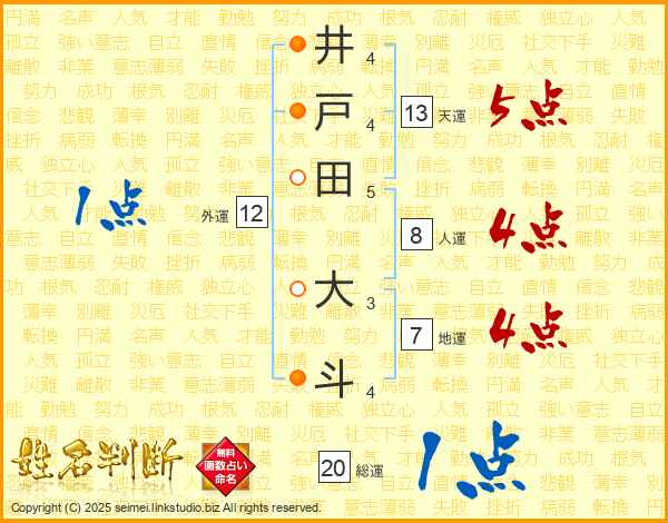 井(4画)戸(4画)田(5画) 大(3画)斗(4画)
