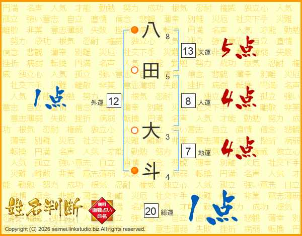 八田大斗さんの天運は13画の5点!