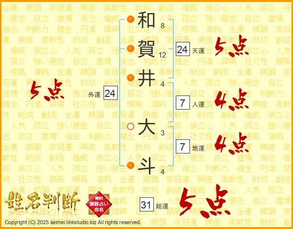 和(8画)賀(12画)井(4画) 大(3画)斗(4画)