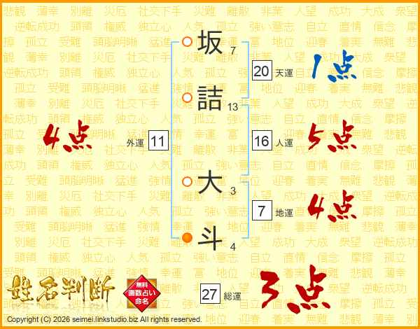 坂詰大斗さんの総運は27画の3点!