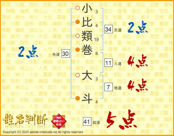 小(3画)比(4画)類(19画)巻(8画) 大(3画)斗(4画)