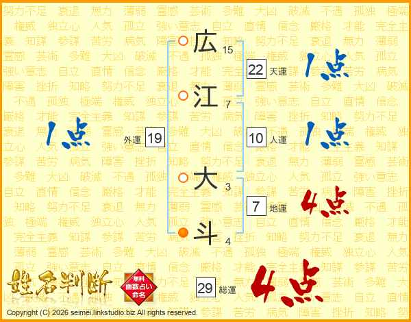 広江大斗さんの総運は29画の4点!