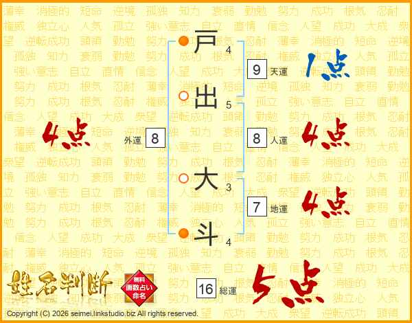 戸出大斗さんの総運は16画の5点!