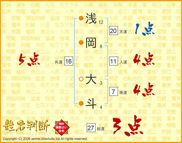 浅(12画)岡(8画) 大(3画)斗(4画)