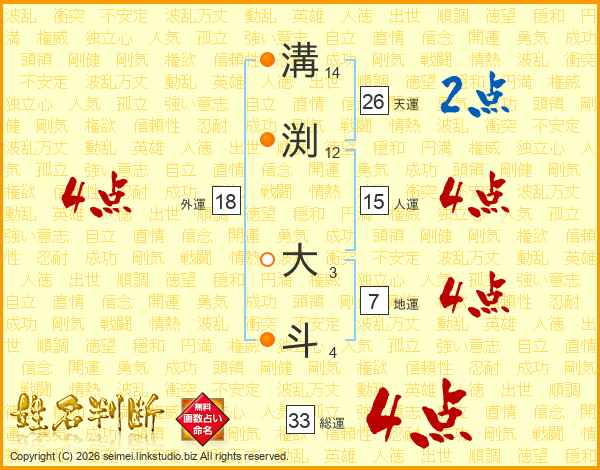 溝渕大斗さんの総運は33画の4点!