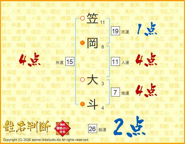 笠岡大斗さんの人運は11画の4点!
