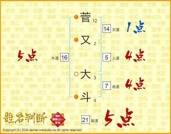 菅又大斗さんの総運は21画の5点!