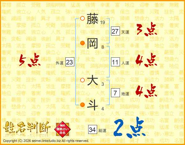 藤岡大斗さんの天運は27画の3点!