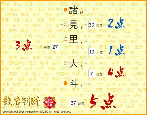 諸(16画)見(7画)里(7画) 大(3画)斗(4画)