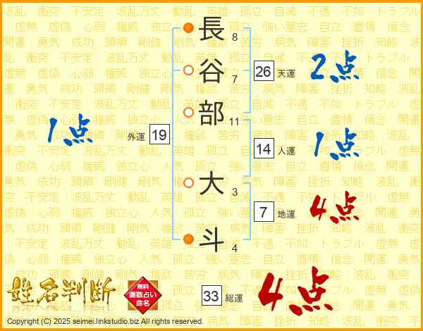 長(8画)谷(7画)部(11画) 大(3画)斗(4画)