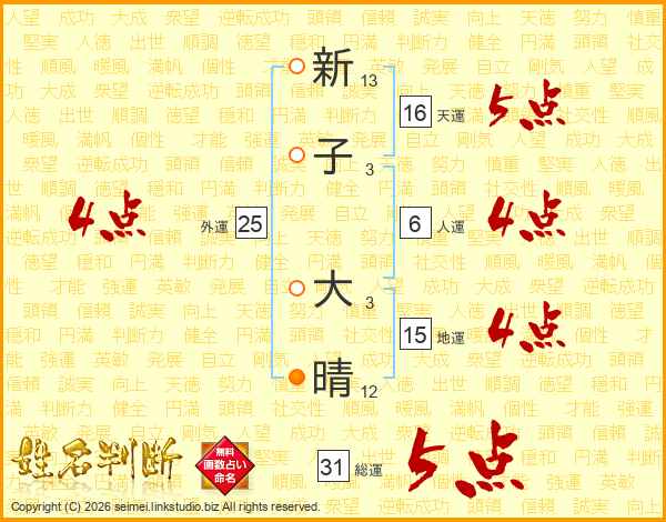 新子大晴さんの総運は31画の5点!