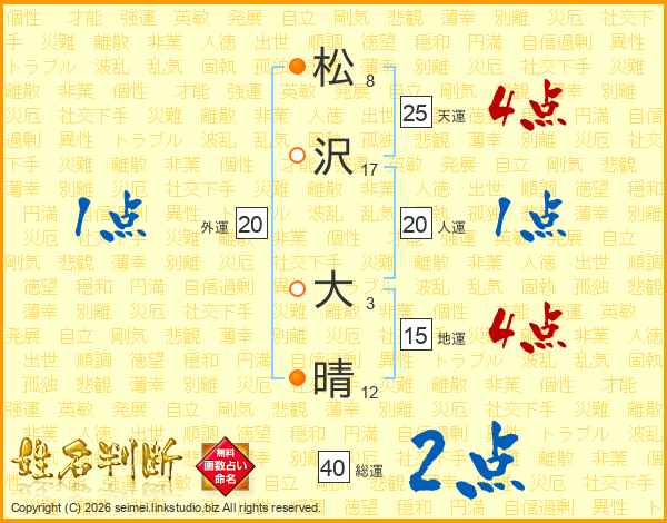 松沢大晴さんの人運は20画の1点!
