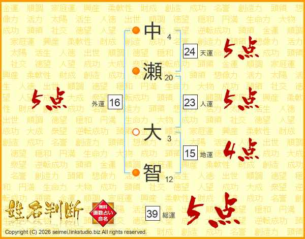 中瀬大智さんの総運は39画の5点!