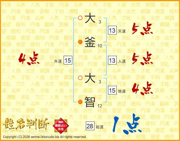 大釜大智さんの総運は28画の1点!