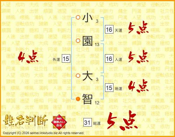 小園大智さんの総運は31画の5点!