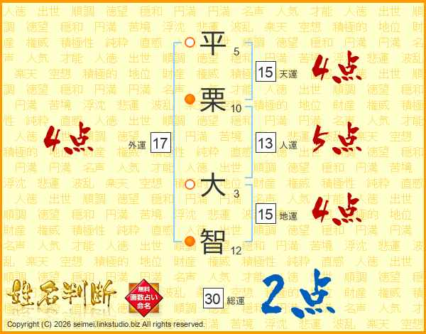 平栗大智さんの天運は15画の4点!