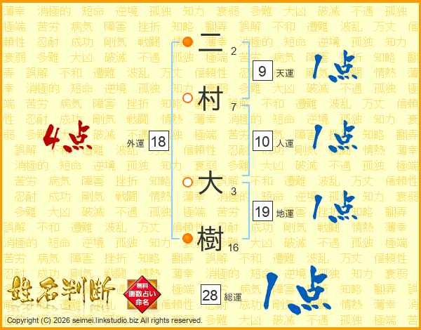 二村大樹さんの総運は28画の1点!
