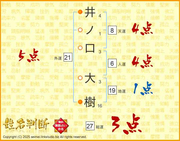 井(4画)ノ(1画)口(3画) 大(3画)樹(16画)