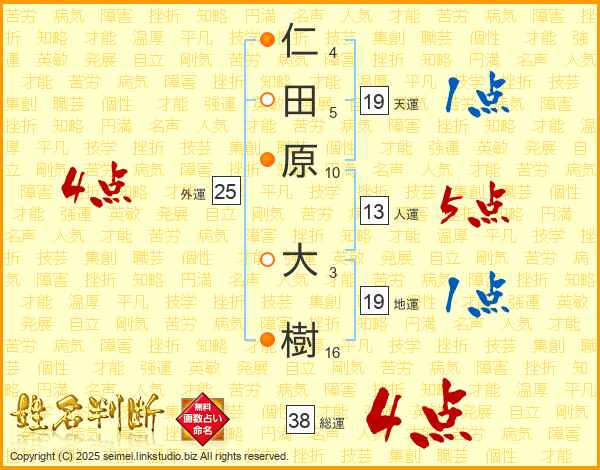 仁田原大樹さんの総運は38画の4点!