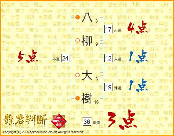 八柳大樹さんの総運は36画の3点!