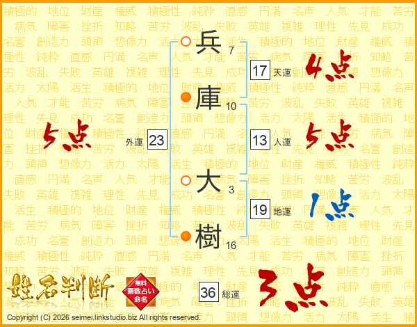 兵庫大樹さんの総運は36画の3点!