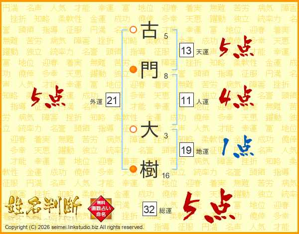 古門大樹さんの総運は32画の5点!