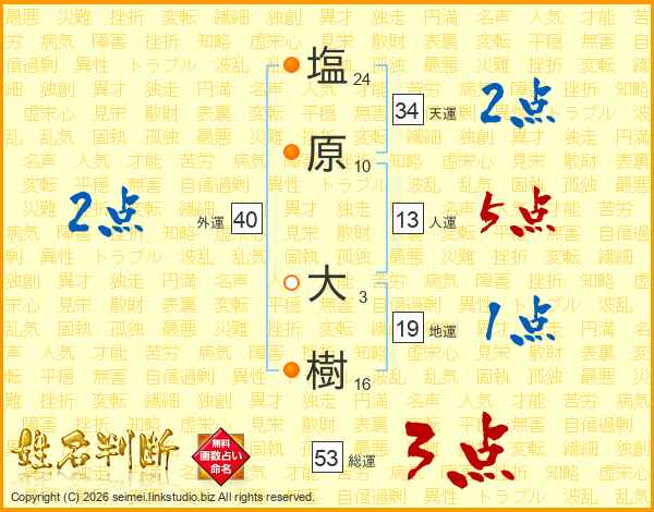 塩(24画)原(10画) 大(3画)樹(16画)