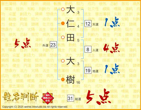 大仁田大樹さんの総運は31画の5点!