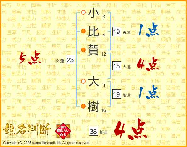小比賀大樹さんの総運は38画の4点!