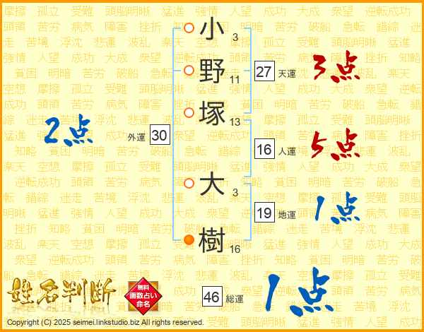 小野塚大樹さんの天運は27画の3点!