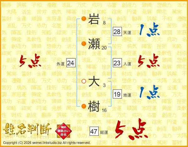 岩瀬大樹さんの総運は47画の5点!