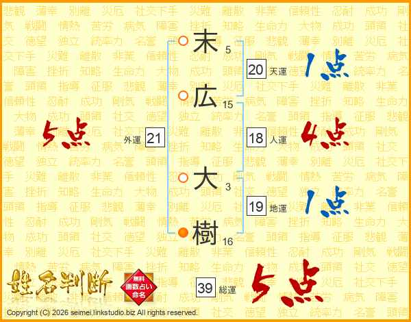 末広大樹さんの総運は39画の5点!