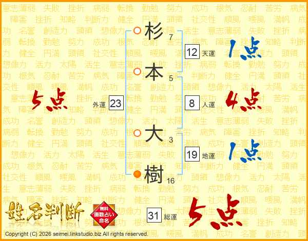 杉本大樹さんの総運は31画の5点!
