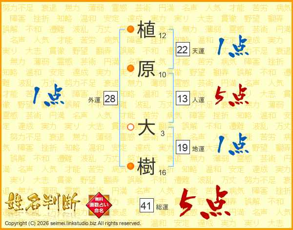 植原大樹さんの総運は41画の5点!