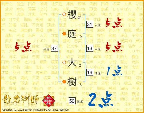 櫻庭大樹さんの外運は37画の5点!