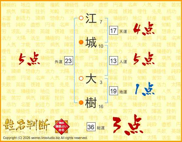 江城大樹さんの総運は36画の3点!