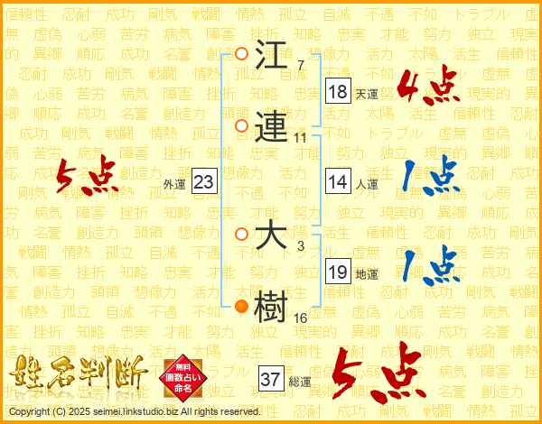 江連大樹さんの総運は37画の5点!